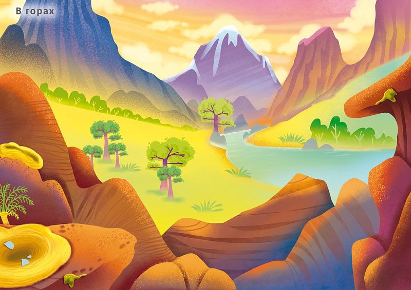 - 11 ярких тематических пейзажей-фонов с изображениями динозавров на суше, под водой и в небе.