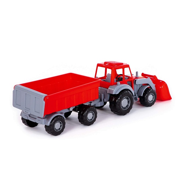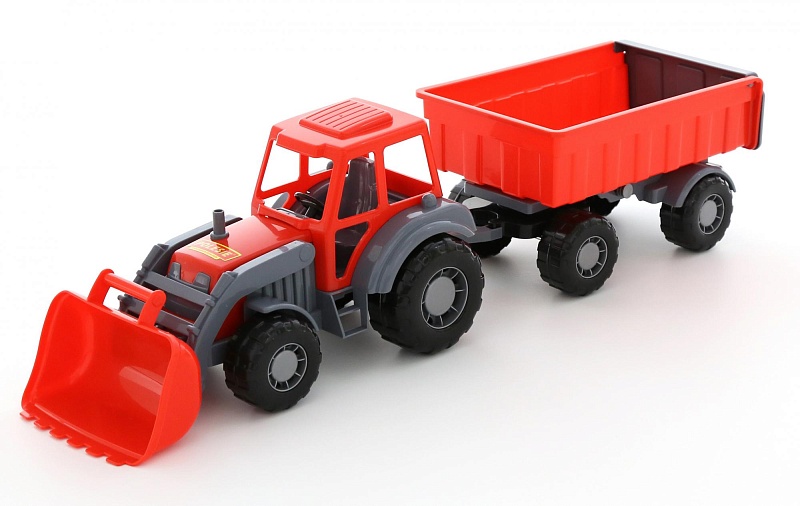 Игрушечный трактор Алтай 35349 с прицепом №1 и ковшом станет отличным развлечением для мальчика от 3 лет на прогулке или дома.