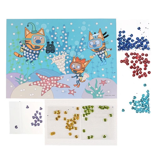 с наборами для творчества «Мозаика из пайеток. Подводный мир» из серии «Три кота» ТМ «МультиАрт» ребёнок сможет самостоятельно создать красивую поделку.