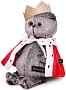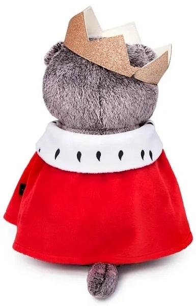 На Басике 22 см царская мантия из алого и белого ворсистого софта с принтом под горностая.