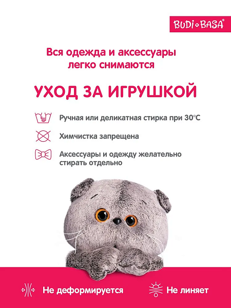 Мягкая игрушка кот Басик поставляется в транспортировочном коробе, защищающем покупку при доставке.