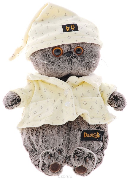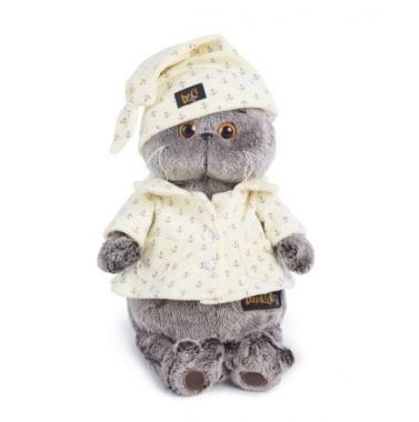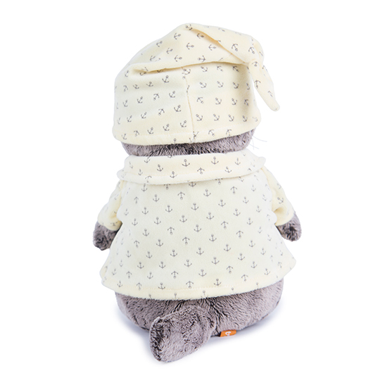 Басик в милой тёплой пижамке цвета топлёного молока из мягкого хлопка-интерлока с принтом в виде якорьков.