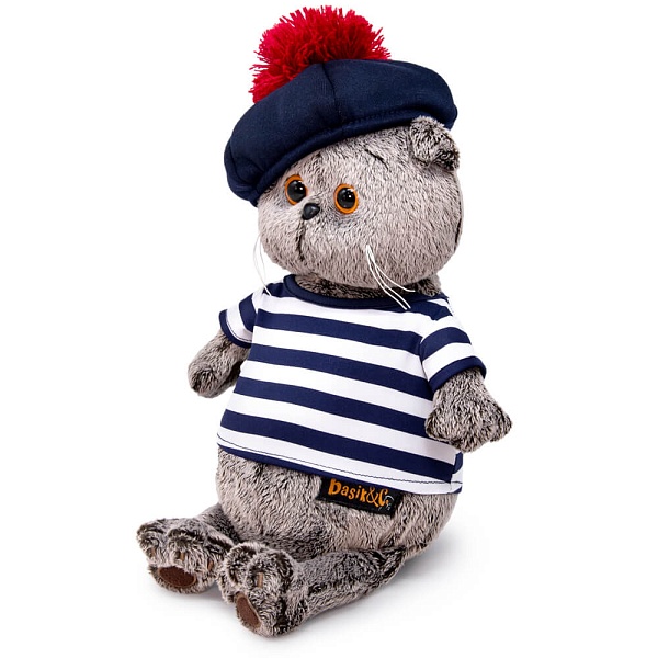 Мягкая игрушка шотландский вислоухий плюшевый Басик кот с мягкой серебристо-лиловой шерсткой, выразительными медовыми глазами и коротким хвостиком.