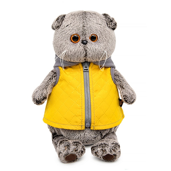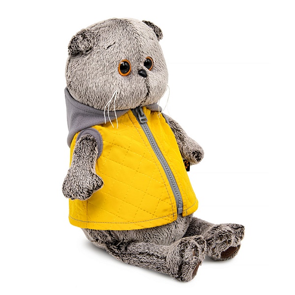 Басик в желтой жилетке с серым капюшоном Ks22-058