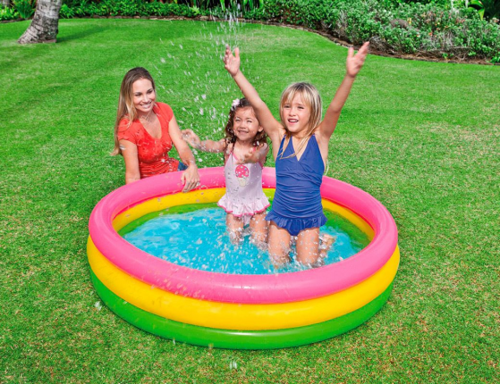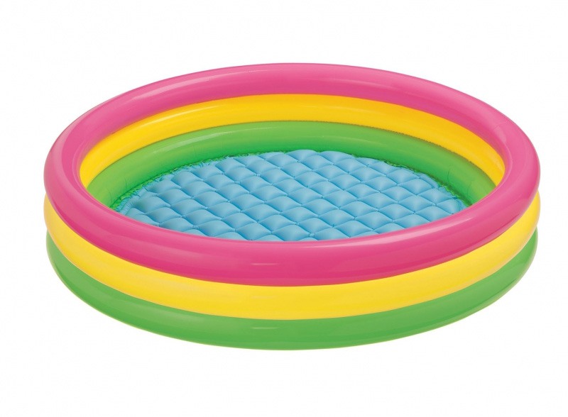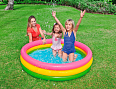Симпатичный красочный бассейн имеет мягкие надувные бортики, которые уберегут вашего ребёнка от травм. Яркая радужная расцветка создает приятное впечатление от бассейна. Можно добавить немного надувных игрушек, чтобы разнообразить досуг ребёнка. Возможный объём наполнения бассейна 272 литра при 80% наливании. В комплект бассейна не входит насос. На случай прокола, к бассейну прилагается ремкомплект.