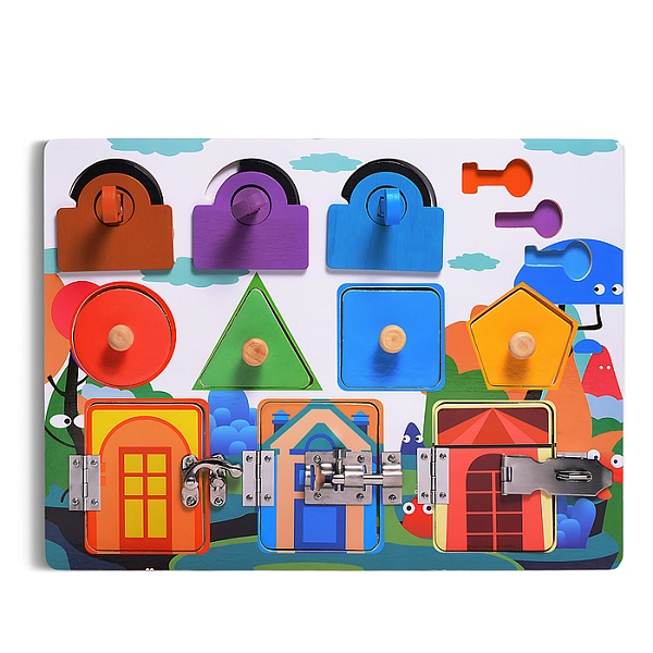 Развивающая доска с настоящими замками и ключами, созданная для тренировки логики, моторики и самостоятельности! Каждый замочек открывается своим ключом, а под дверцами скрываются красочные вкладыши. Идеальный тренажёр для маленьких пальчиков и любознательного ума.