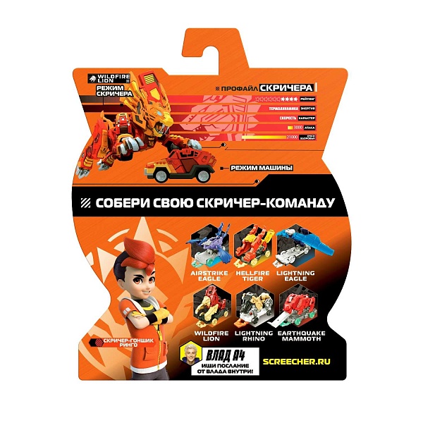Машинка-трансформер Вайлдфаер Лайн бренда "Дикие Скричеры" превращается в саблезубого льва, переворачиваясь в воздухе!