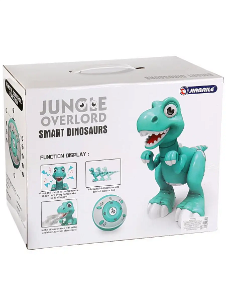 Управление осуществляется с помощью пульта, напоминающий мячик, но самым главным волшебством для ребенка будет то, что динозаврик может распылять пар, достаточно лишь налить воду в специальное отверстие, чтобы затем проверить его необычную способность.