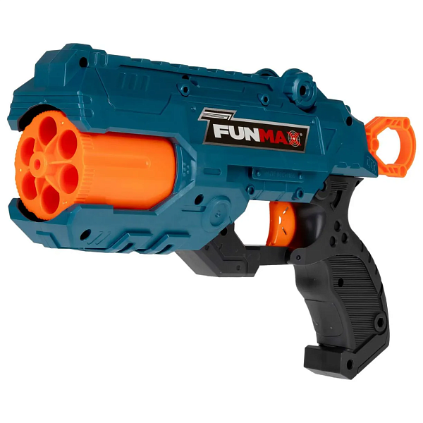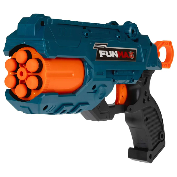 Пистолет игрушечный Funmax "M11", имеет помповый механизм, 7 стволов и 8 EVA снарядов в комплекте.