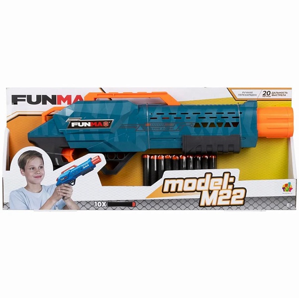 Бластеры не только развлекают, но и развивают зрительно-моторную координацию, мелкую моторику и воображение. Кроме того, они способствуют улучшению логического мышления и усидчивости при достижении поставленных целей. Игрушечное оружие бывает механическим и на батарейках. Пистолет Funmax M22 оснащён помповым механизмом, двумя стволами и десятью снарядами из EVA, предназначен для мальчиков старше 8 лет.