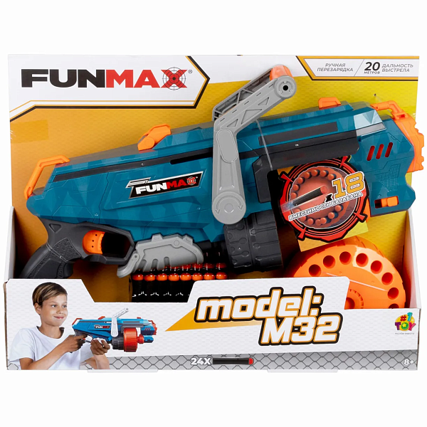 Funmax "M32" бластер механич., барабан на 18 выстрелов, в компл. 24 EVA снаряда Т24247