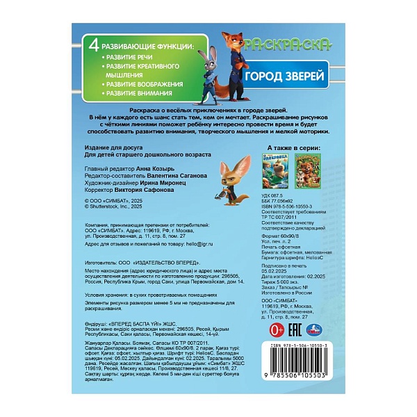 Раскраска «Город зверей» ТМ «УМка» — отличный подарок для юных художников: