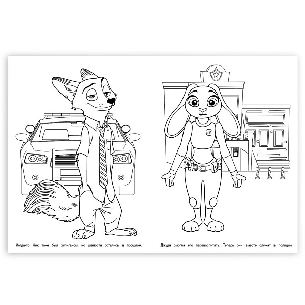 Эта увлекательная раскраска про приключения детективов в городе, где живут одни звери, непременно понравится вашему ребёнку. В ней он найдёт интересные картинки с чёткими контурами и сюжетными текстами к ним. Благодаря удобному формату раскраску можно взять с собой в путешествие.