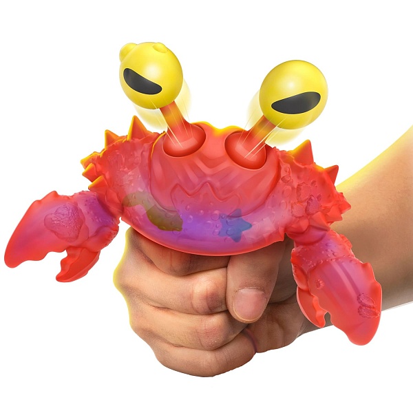 Высота фигурки - 9,5 см. Экзошок наполнен элементами из жесткого пластика с мини-фигурками в морской тематике. При сжатии фигурки её глаза выдвигаются. Нижняя часть туловища выполнена из жесткого пластика для устойчивости фигурки при действии функции "Пучеглазая Атака".