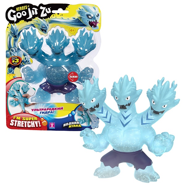 Растягивай его! Тянущийся монстр-супергерой мгновенно применит свою мощную силу и вернется в первоначальный облик. Фигурка Гидра Гуджитсу серии Водная Атака приятна на ощупь и растягивается в 3 раза.