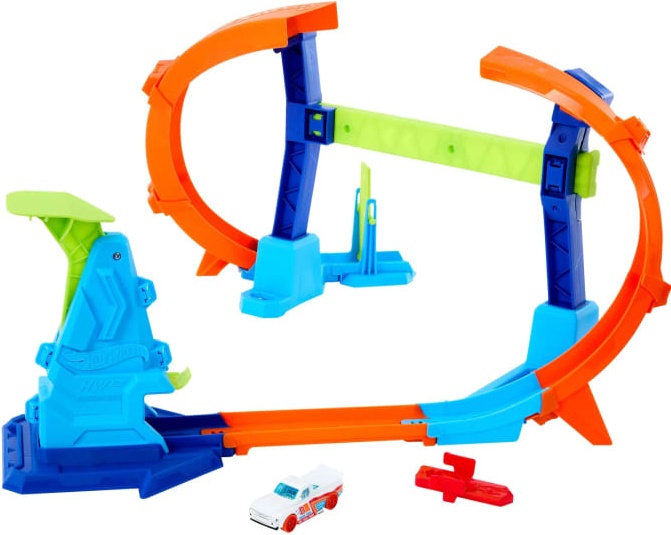 В набор входит регулируемая спиральная петля, которую дети могут разъединить, чтобы создать сложную трассу для прыжков для своих машинок Hot Wheels.