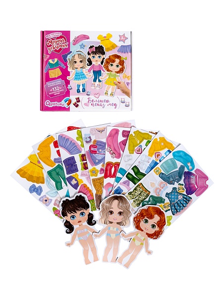 Подбирайте красивые наряды для трех модных девчонок, с развивающей магнитной игрой «Одевашки. Модная девчонка. Большой показ мод» из серии «Магнитные истории»!
