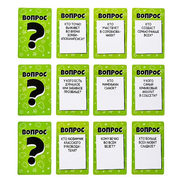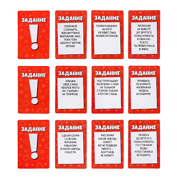 5. Тот, кто получил большинство голосов, берет карточку с заданием и выполняет его, создавая новую волну веселья.