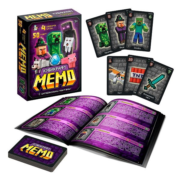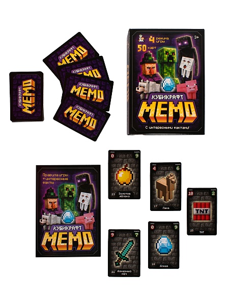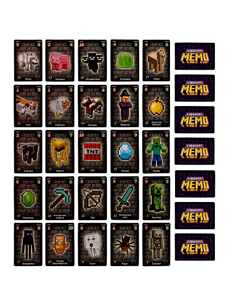 Мемо «Кубикрафт» - это увлекательная игра, где вас ждут карточки с известными мобами, предметами и элементами мира «Кубикрафт». Вы узнаете, кто обладает мощной атакой, кто надежно защищён, а кто опасен в любой ситуации.