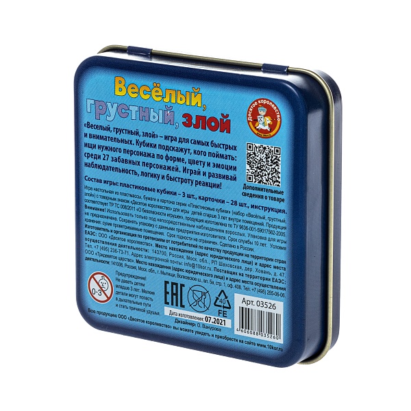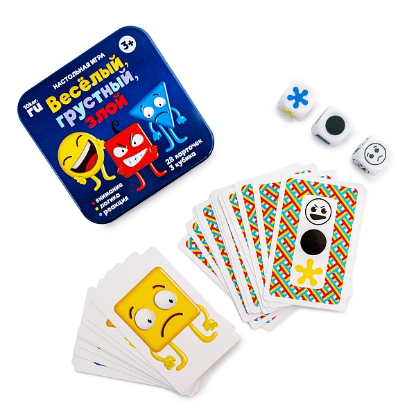 Игра настольная «Веселый, грустный, злой» (жестяная коробочка) 03526