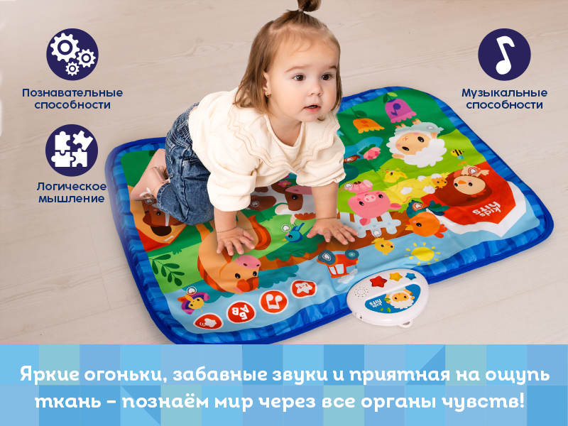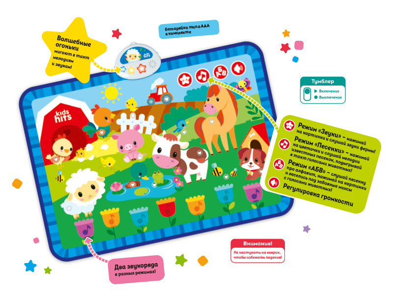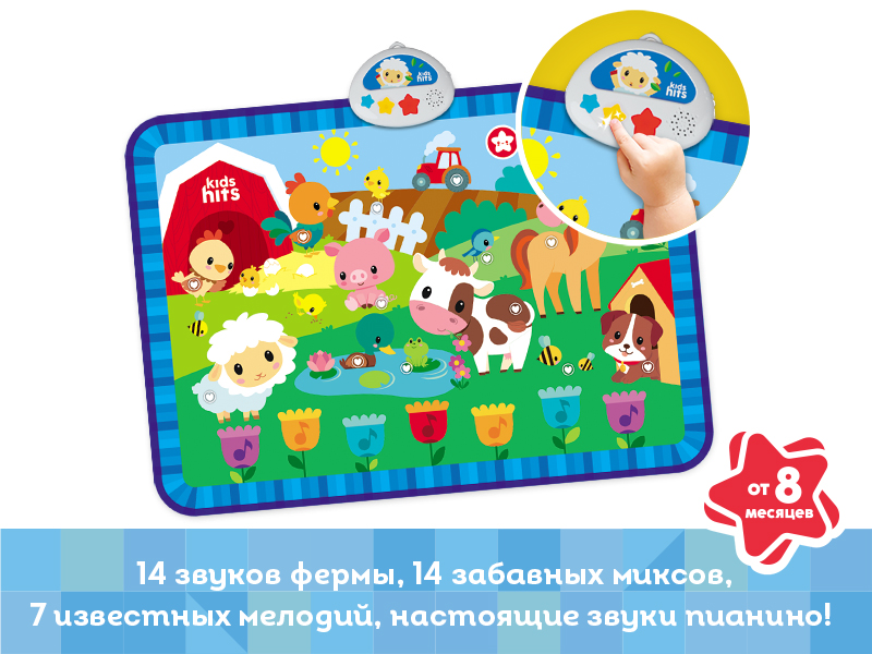 Игрушка интерактивная "Kids Hits.Музыкальный коврик с огоньками. Кто пасется на лугу" KH04/002