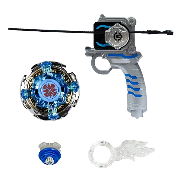 В комплект входят: волчок, пусковая установка с рукояткой, лента для запуска, сменный наконечник, монтажный инструмент, инструкция. Упаковка — коробка с окном 26×7×22 см.