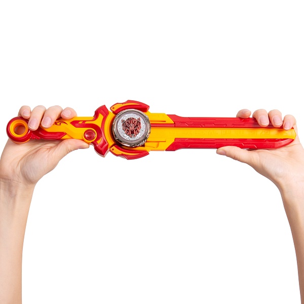 Он помогает точнее запустить блейд на арену. Меч не только пусковая установка, но и монтажный инструмент. В комплект входит облегченный волчок для скоростного запуска. Его можно пересобирать: все элементы взаимозаменяемы внутри линейки Эпик Лончер. Вставь Надо в специальное отверстие до щелчка, раскрути волчок с помощью ножен, нажми кнопку запуска. Блейд Эпик Лончер Стандарт светится при вращении и нажатии на аватар.