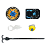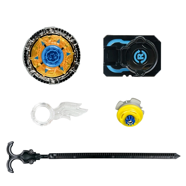 В комплект входят: волчок, пусковая установка, лента для запуска, сменный наконечник, монтажный инструмент, инструкция. Упаковка — коробка с окном 17×6×19,5 см.