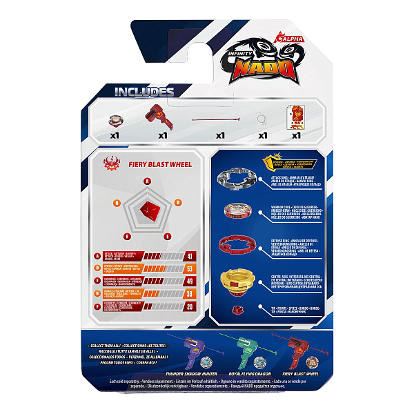 Fiery Blast Wheel или Огненный Шторм — волчок Рэда из Клана Огня, воплощающий их яркую энергию. Он состоит из объёмного аватара, металлического атакующего кольца, защитного кольца, оси и наконечника. Его ключевая характеристика — защита: волчок гасит удары соперника и удерживает позицию даже в напряжённом бою.