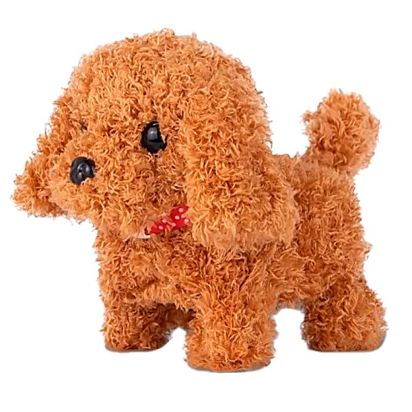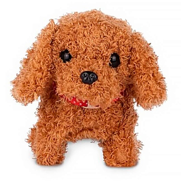 Пёсик мило семенит лапками, открывает рот и звонко лает, шевелит головой и хвостом! Игрушка работает от батареек (в комплект не входят).