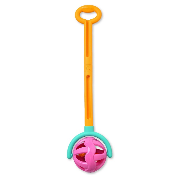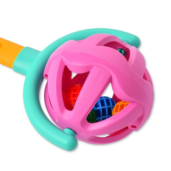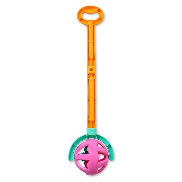 Каталка на палочке «Шарик» с удобной безопасной ручкой для ребенка и цветными шариками внутри для звукового эффекта.