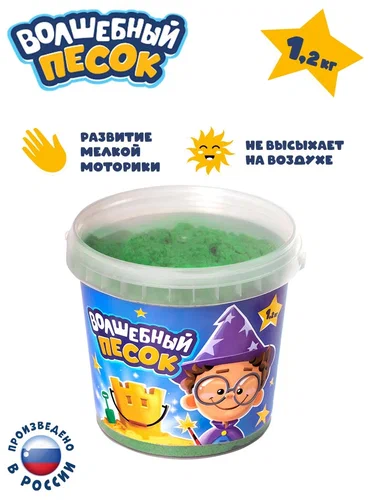 Кинетический песок "Волшебный песок" 700 гр., ведерко, зеленый KP2BV