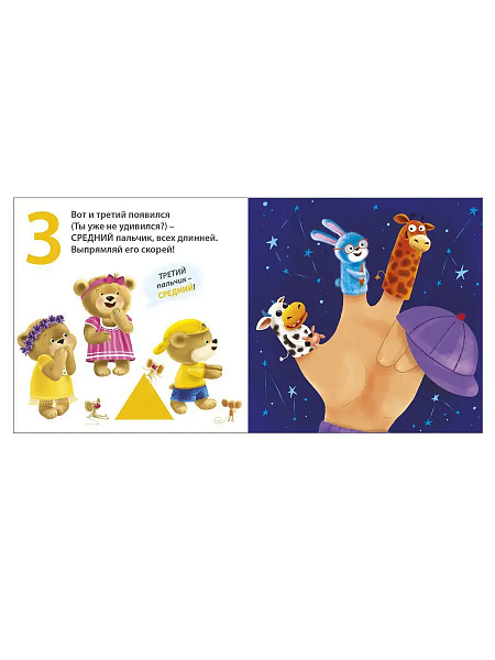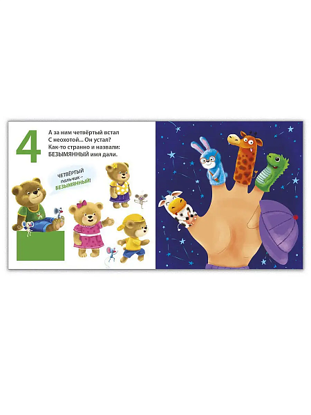 Познавательная книжка-картонка в стихах Евгения Сосновского быстро и легко научит малыша узнавать цвета, считать от 1 до 5 и познакомит с формами. Ребёнок узнает сколько пальчиков на одной руке, как они называются. А помогут ему в этом весёлые мышки и милые ДружиМишки.