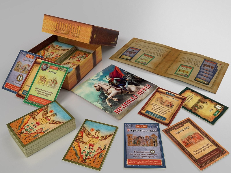 В игре пять видов карт: города, постройки, события, летописи и войска. Города — основа княжеского владения: именно они и воздвигнутые в них постройки дают львиную долю очков славы. События представляют собой разнообразные происшествия: вы можете сжечь все постройки в чужом городе, переманить вражескую армию на свою сторону или украсить карты из руки противника. Войска нужны для захвата чужих городов, а также для того, чтобы использовать некоторые карты летописей и событий. Летописи, будучи раз сыгранными, остаются до конца игры. Они могут приносить или отбирать очки славы, усиливать ваши войска или давать вам преимущества в ходе игры. Особая летопись «Татарское нашествие» позволяет завершить игру досрочно, в выгодный игроку момент.