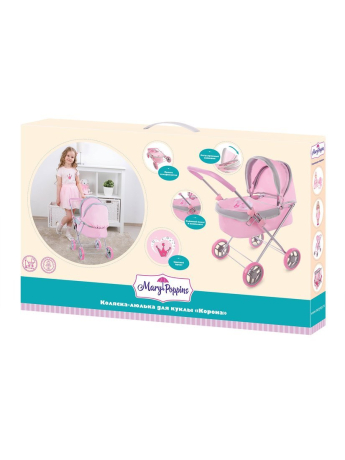 Коляска-люлька «Корона» предназначена для сюжетно-ролевой игры в «дочки-матери». С ней девочка сможет легко взять свою любимицу-куклу на прогулку и не только.