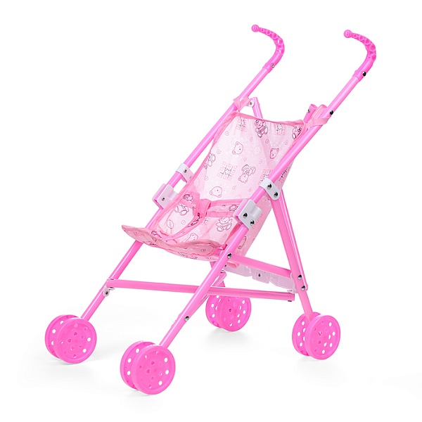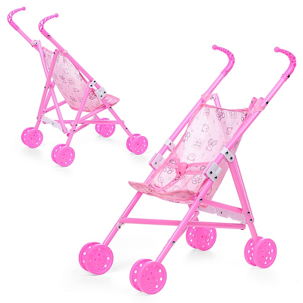 Коляска для кукол 886-9B трость (металлическая, складная, прогулочная, цвет розовый)
