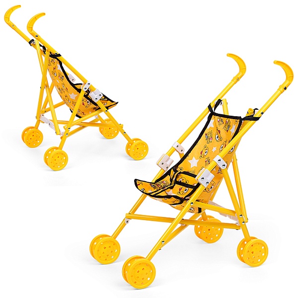 Коляска для кукол 886-7C трость (металлическая, складная, прогулочная, цвет желтый)