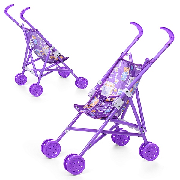 Коляска для кукол 886-7D трость (металлическая, складная, прогулочная, цвет фиолетовый)
