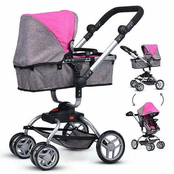 Надёжная и стильная коляска для двух кукол станет настоящей находкой для маленькой мамы. Металлический складной каркас обеспечивает устойчивость, а продуманные детали делают прогулки с куклами максимально реалистичными и удобными.