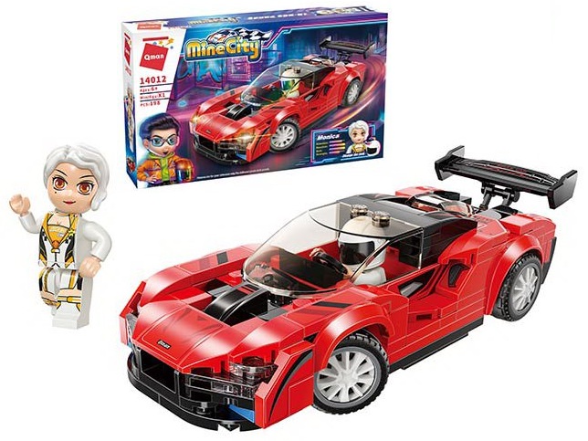 Конструктор QMAN из серии «MineCity» позволит ребенку собственными руками собрать ярко-красную спортивную машинку.