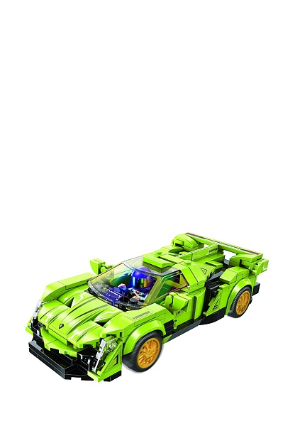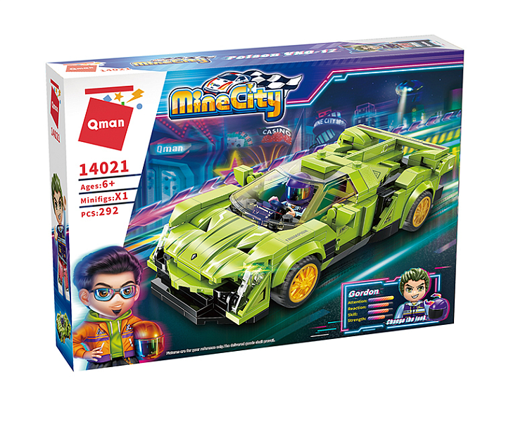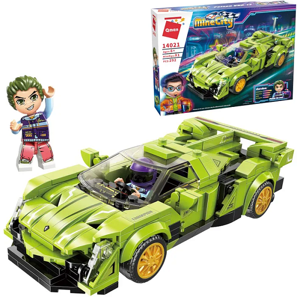 Конструктор QMAN из серии «MineCity» позволит ребенку собственными руками собрать ярко-зеленую спортивную машинку.