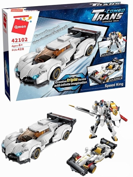 Конструктор трансформер Король скорости из серии Trans-combo 42102 - это большое количество деталей, легкость сборки, совместимость с другими конструкторами этой серии, с которыми можно создать невероятное количество комбинаций в увлекательном мире, где каждый ребенок сможет почувствовать себя настоящим строителем.