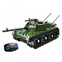 В наборе 418 деталей из высококачественного пластика разных форм, размеров и цветов, из которых ваш ребенок сможет собрать мощный танк, которым потом можно будет управлять с помощью пульта 2,4 ГГц.