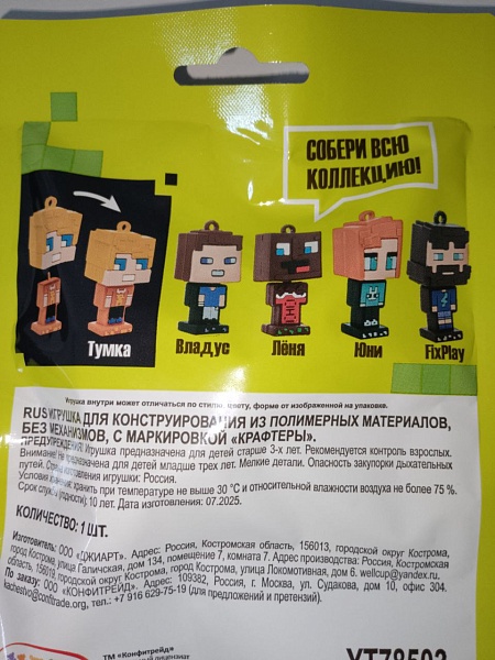 КРАФТЕРЫ ВЛАДУС И ЛЕНЯ, ТУМКА, ФИКСПЛЕЙ, ЮНИ Игрушка во флоупаке 6/16