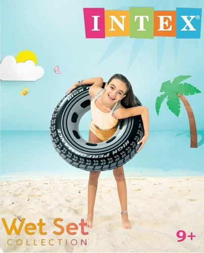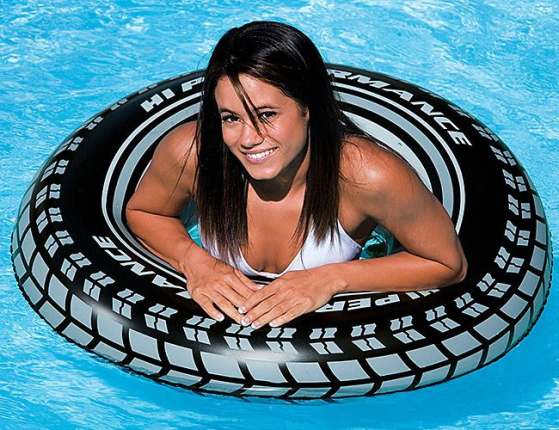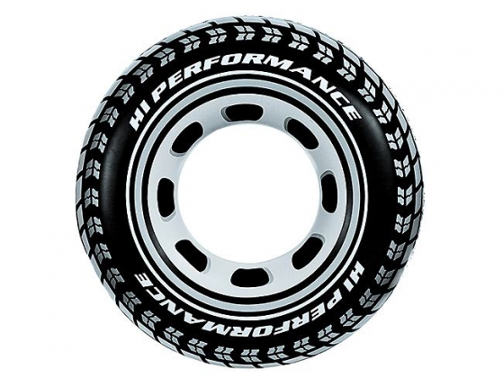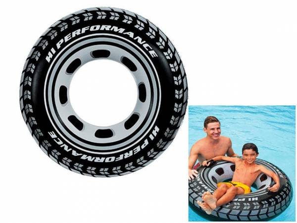 Большой надувной круг в форме автомобильной шины. Круг изготовлен из прочного винила. Предназначено изделие для детей от 9 лет и взрослых.