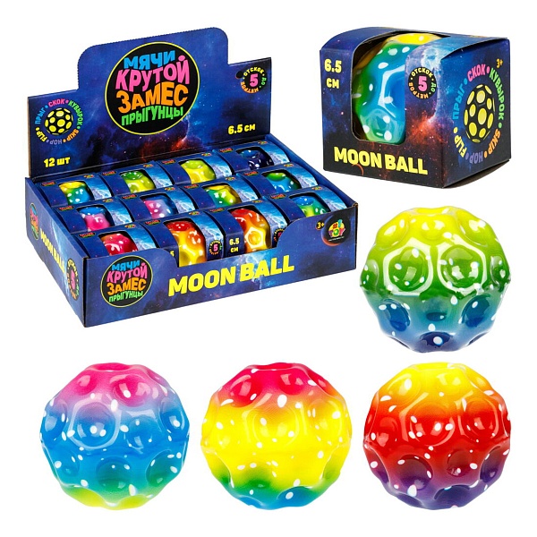 Мяч, который легко взлетает на высоту до 5 метров, дарит приятный звук при каждом отскоке и имеет поверхность с рельефом, напоминающим лунные кратеры, – всё это об оригинальном Moon Ball Крутой замес от 1TOY!