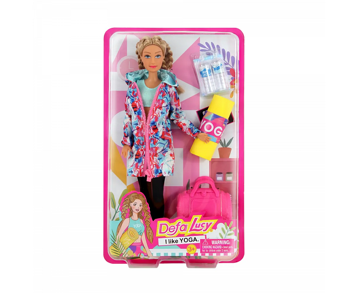 Кукла Defa Lucy - девочка, которая любит спорт, она любит заниматься йогой, она встречается с друзьями каждый день, носит с собой коврик для йоги, носит спортивную сумку в класс йоги и делает упражнения йоги вместе, где она делает сложные движения йоги, потеет, и она способна получить расслабление тела и ума.