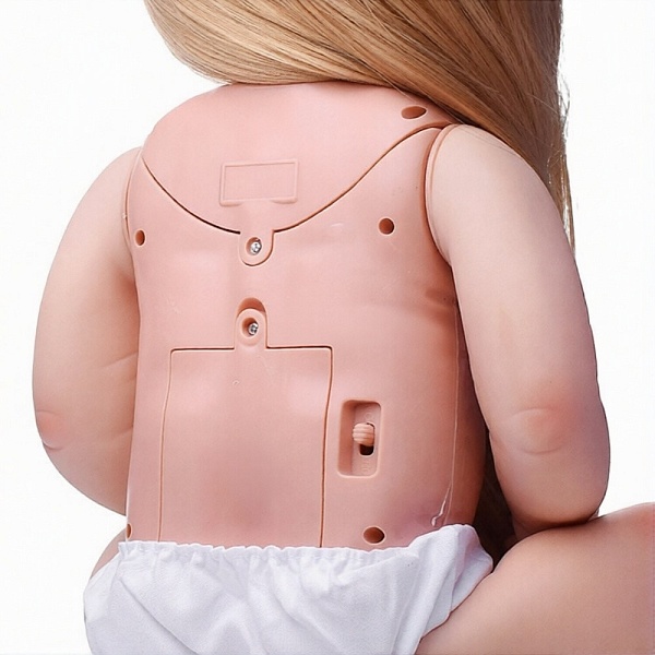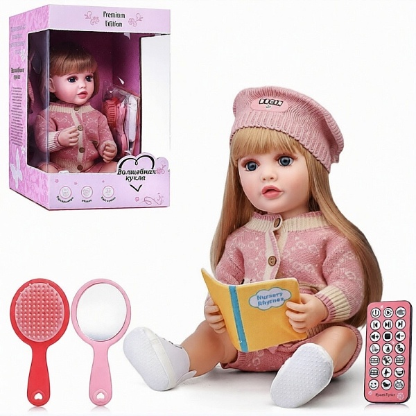 Большая кукла ростом 55 см не просто похожа на настоящего малыша – она умеет говорить, слушать и отвечать! При нажатии на кнопку на груди Майи вступает в диалог, а во время разговора у неё двигаются губы. С помощью удобного пульта можно регулировать громкость, включать сказки, песенки и даже записывать свои фразы.