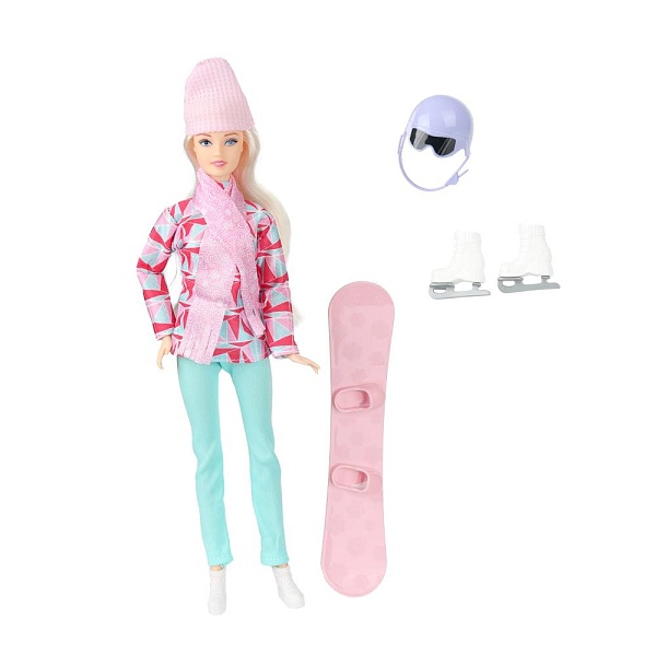 Очаровательная София одета в пёстрый спортивный костюм, светло-розовую шапочку и шарф. Принт на курточке повторяет принт на сноуборде - модница София знает толк в стильном образе! Одежда легко снимается и надевается. С такой модной куклой девочке будет интересно и весело играть: благодаря тому, что руки и ноги куклы подвижны, им можно придать любое положение. У Софии длинные красивые волосы, которые хозяйка куклы сможет заплетать в разные причёски. Наличие дополнительных аксессуаров поможет разнообразить игровой процесс.