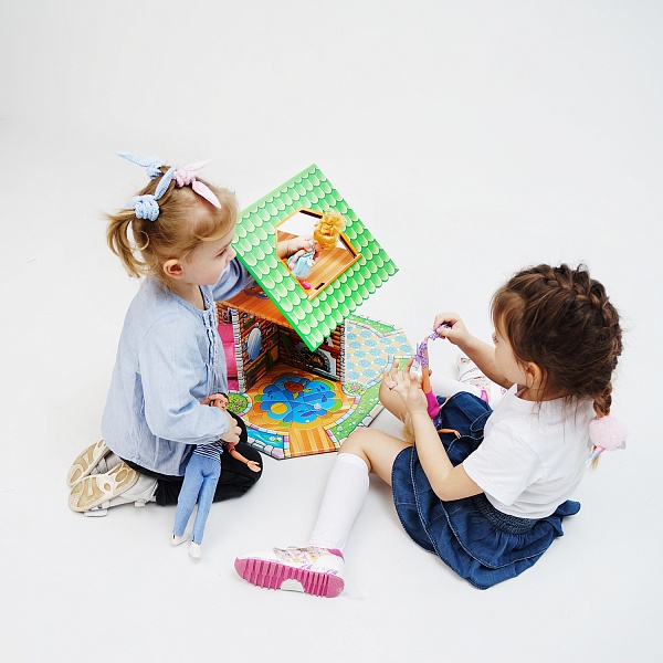Изделие выполнено из ламинированного картона толщиной 2 мм. Рекомендуемый размер игрушек для домика – до 18 см. Куклы и аксессуары, изображённые на упаковке, в комплект не входят. Вы можете купить их дополнительно на нашем сайте.